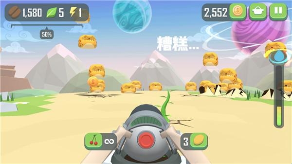 3、核心目标是操控水果枪抵御外星怪物,守护世界上最后一个咖啡工厂,整体玩法简单。