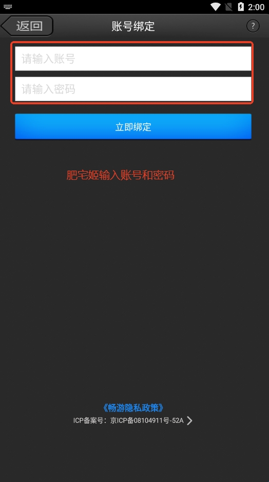 4、输入自己的刀剑英雄令游戏账号和密码完成绑定。