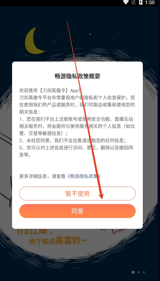 1、下载本站提供的刀剑英雄令牌资源,阅读畅游隐私政策概要后点击“同意”。