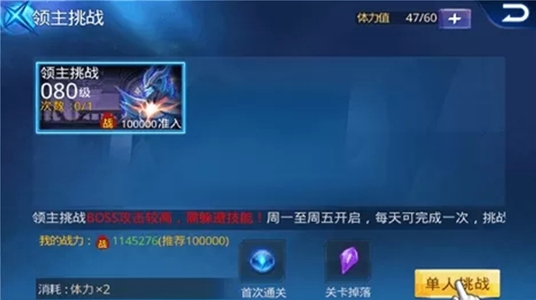 领主挑战副本会在周一至周五开启,每天可完成一次该副本,且每天领主副本的BOSS都是不同的,挑战成功即可获得大量洗炼石以及装备碎片,而这两个奖励都是玩家提升战力最需的道具之一!