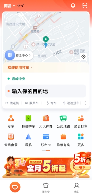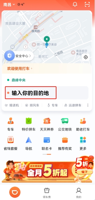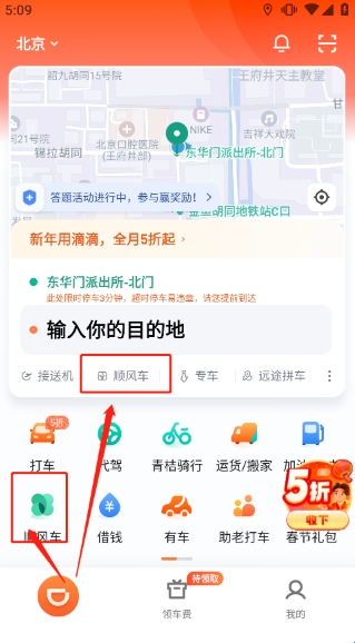 (1)进入app首页,我们可在下图所示位置打开“顺风车”
