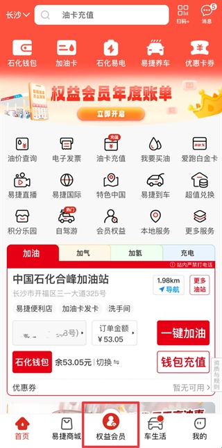 1、下载“易捷加油”APP,点击底部菜单栏“权益会员”