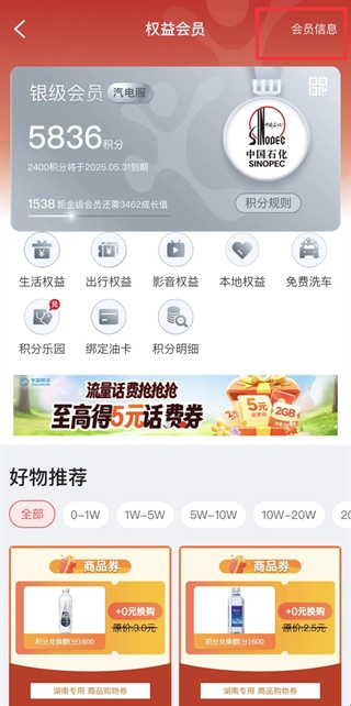 3、填写相关资料即完成权益会员的开通,点击“会员信息”,即可查看相关信息