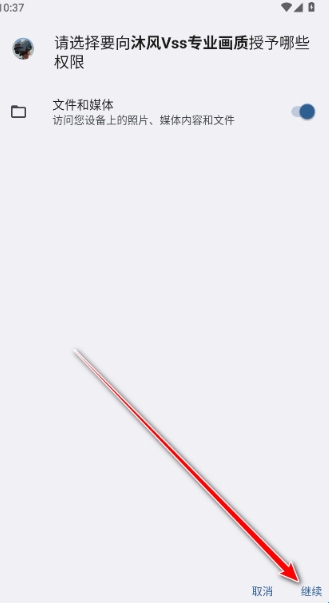 打开沐风Vss专业画质,点击右下角的继续。