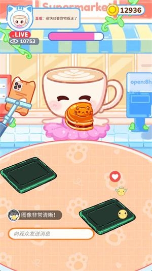 5、点击左上方的超市可以进入商场来购买不同的美食,购买美食后将直接开始直播,吃掉所有美食后就可以获得金币。