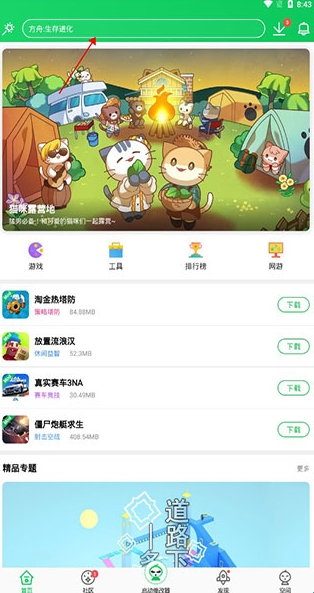 安装完成后,打开这款软件进入首界面,在上方可以搜索自己想要下载的软件、游戏;
