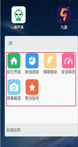 右划进入启动修改器,如下图在手机桌面会显示修改器图标;