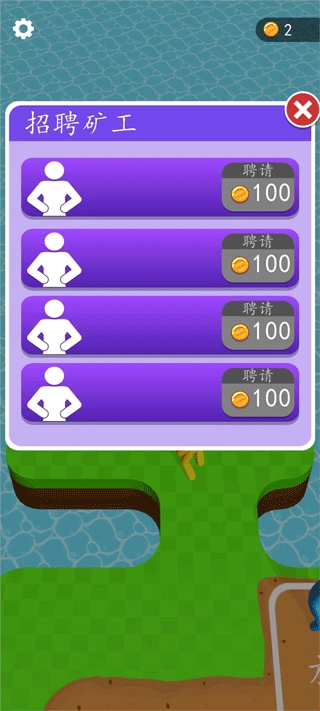 6、获取一定的金币招募和升级矿工协助你劳作,只要有矿便可以源源不断的获得金币,这便是游戏的核心。