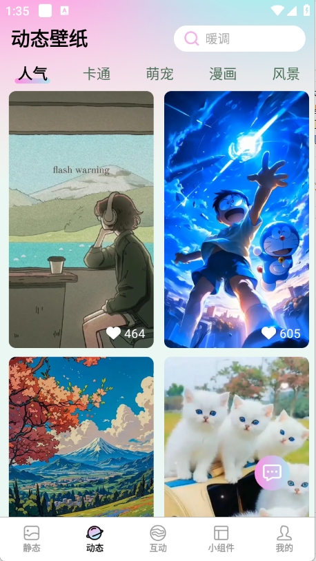 百变壁纸精灵是一款汇集了许多好看手机壁纸的软件。玩家使用该软件可以找到各种各样的壁纸,同时可以把这些壁纸下载下来使用,或是分享给好朋友们看,而且还内置了各种小组件。软件功能全面,用户可以随时切换壁纸,欢迎感兴趣的朋友下载。
