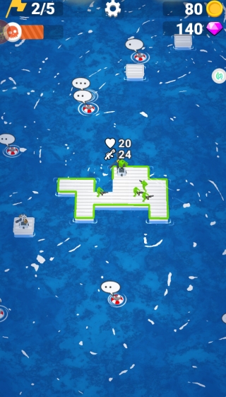 4、不断的扩大你的木筏,救起海中的人员,获取炮塔,射击沿路的敌人。