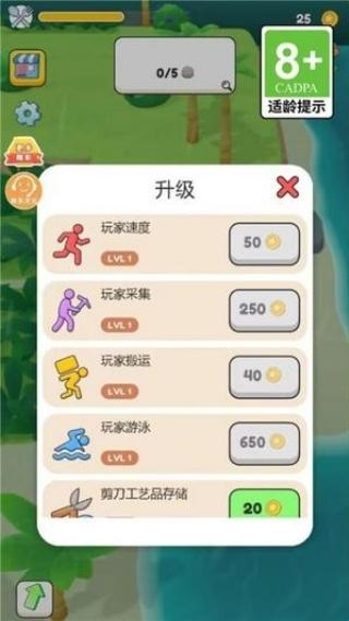 4、升级你的各项能力,包括移动速度以及采集效率等等。