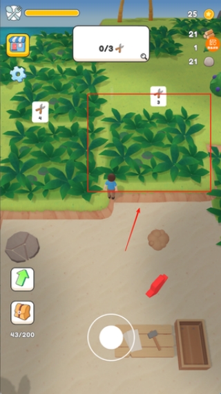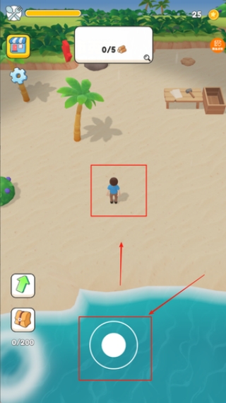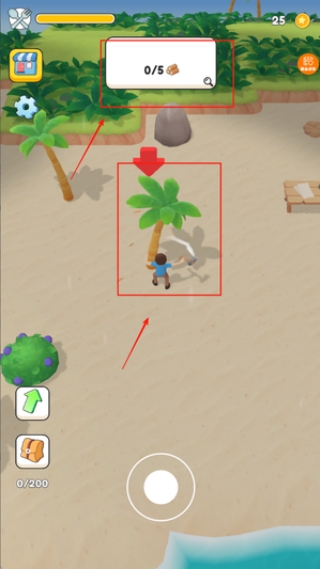 1.滑动中间的摇杆控制人物去采集需要的木材。