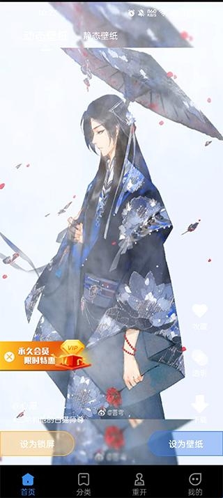 1、首先在本站下载安装并打开软件,来到软件首页,选择你想要的壁纸,进行设置为锁屏和壁纸;