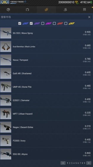 3、市场:购买所需品质的任何武器或刀!您可以使用按名称搜索皮肤或在五个武器类别中浏览皮肤。