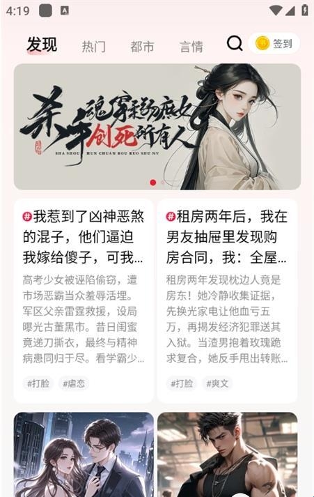 软件拥有庞大的小说资源库,并按照都市爽文、言情甜宠等热门标签进行精细分类,方便用户快速找到自己感兴趣的作品。