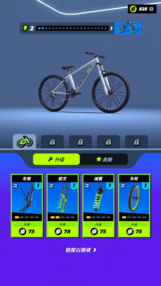 2、当上方的等级满了之后即可解锁出新的自行车。