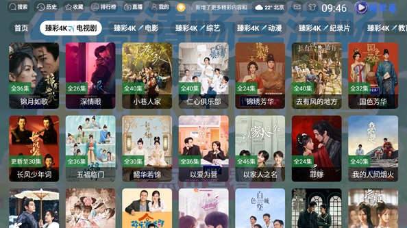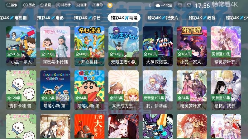 3.点击顶部的影视分类,包括臻彩4K电视剧、臻彩4K电影、臻彩4K综艺、臻彩4K动漫等