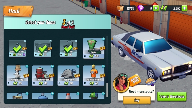 6、结束竞拍后,我们可以选择三样带回家,其他的则是直接售卖。
