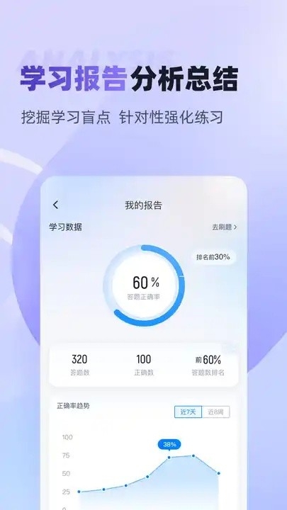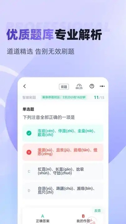 1、界面简洁,操作直观,考生可以轻松找到所需功能,无需复杂学习过程,快速进入备考状态。