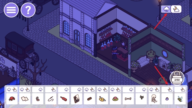 6、右上角可以切换白天和黑夜,部分物品需要在特定时间才会出现。