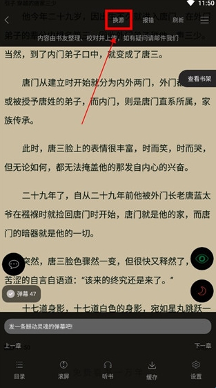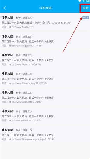 在显示的书源中选择一个切换即可,点击右上角的【刷新】还可以查看有没有其他新书源。