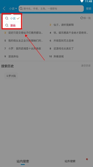 给书籍换源首先进入app后,来到搜索加入一本小说,软件无论是小说还是漫画都可以观看哦。