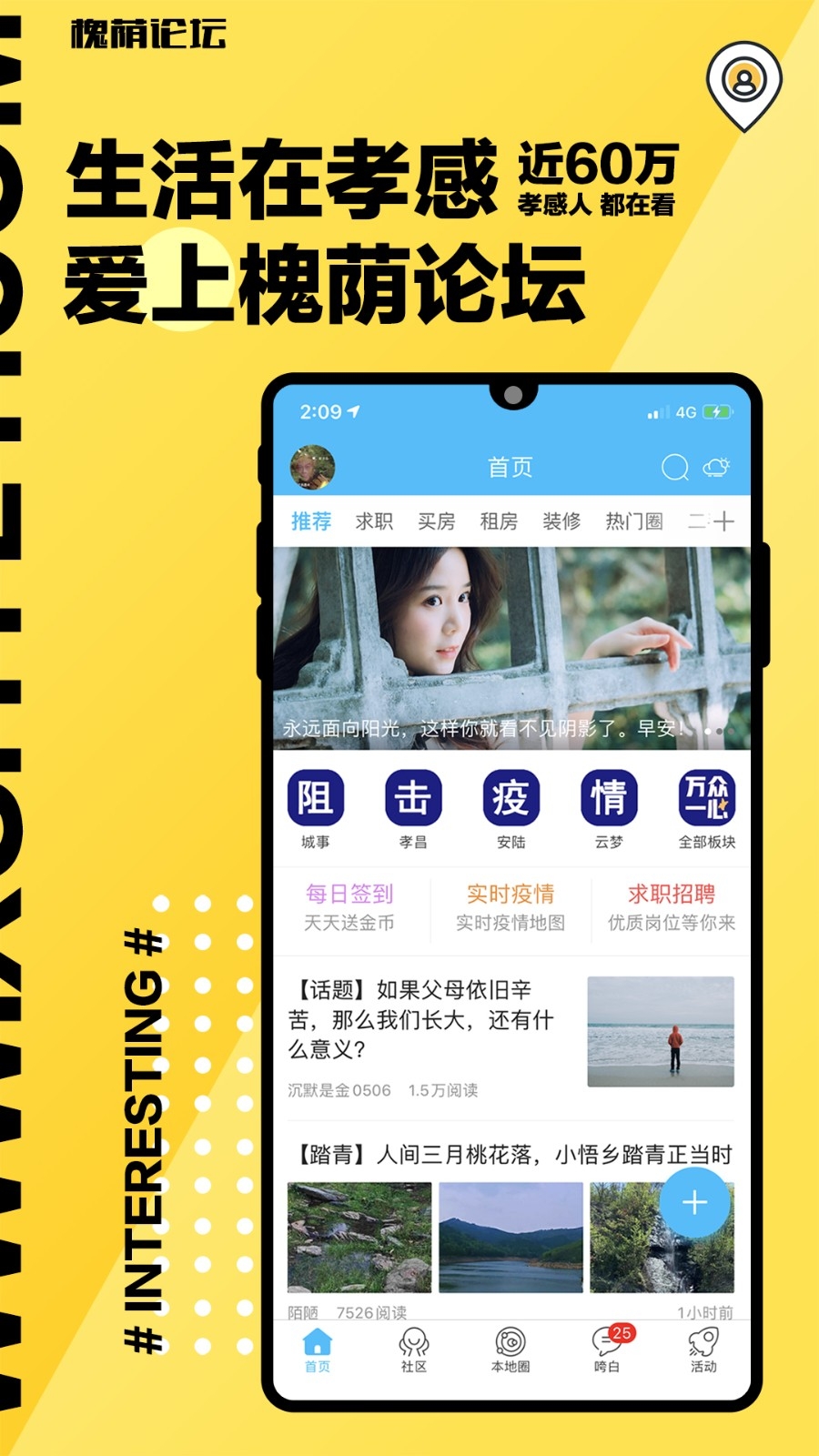 槐荫论坛是一款本地生活服软件,软件专门为孝感本地老百姓所打造,大家可以在论坛上面密切关注求职招聘信息,以及各类的生活资讯具有新闻、学习、娱乐、学习等等,能够帮助用户了解身边发生的大小事,掌握城市的动态,有需要的朋友一起来下载吧!