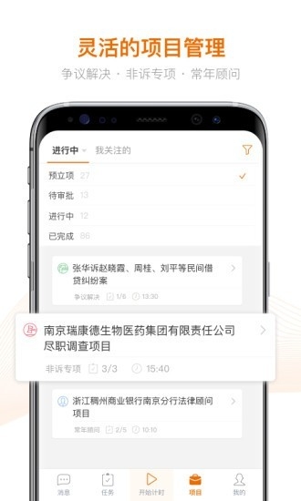 2、检测到每一个项目的纠纷进程,时刻检测进度;
