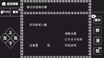 第四步:利用【破】字将【墙】破开,带出里面的【僧】至山的左边(右边无法触发通关条件)