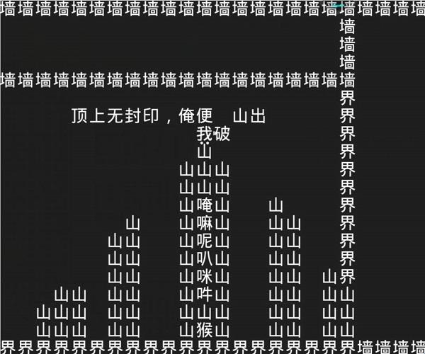 第一步:往右边去,在山的左边去往山脚找【猴】对话,然后你就会得到【顶上无封印,俺便破山出】这句话