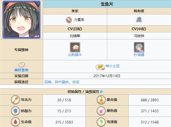 6、力量系:生鱼片+连携飨灵:鲷鱼烧