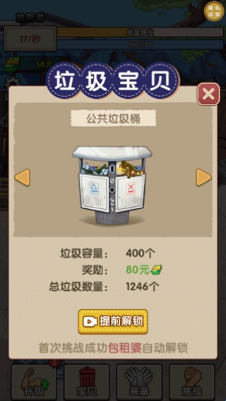 4、玩家需要解锁更多不同的垃圾桶进行挑战,不同类型的垃圾桶可以获得不同的物品哦!