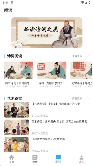 4、在阅读页面中可以了解诗词阅读和艺术鉴赏,让你感受到实时阅读精彩。