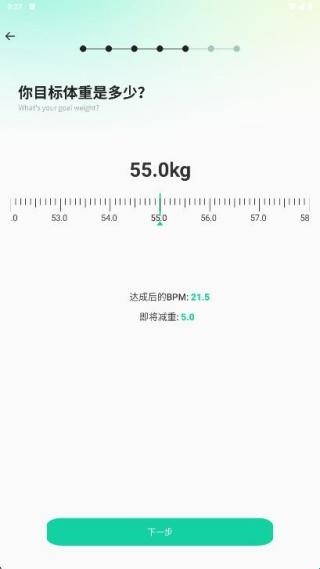2、结合你的身高和体重,同步得出bmi熟知,并且预计减肥体重。