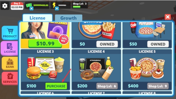 8、随着服务的人数越多,可以提升自己的等级,可以解锁更多的商品。