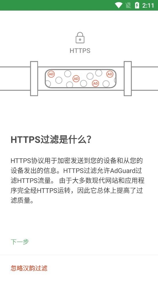 HTTPS协议用于加密发送到您的设备和从您的设备发出的信息。HTTPS过滤允许AdGuard过滤HTTPS流量。由于大多数现代网站和应用程序完全经HTTPS运转,因此它总体上提高了过滤质量。