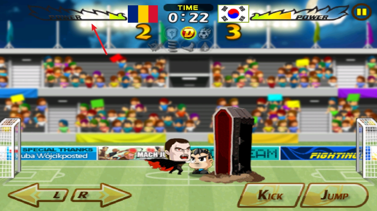 5、进球后即可得分,上方可以看到双方的分数和剩余时间。