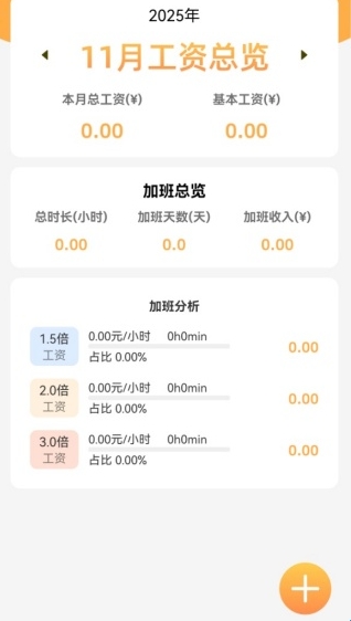 1、快速记录收入、加班时长、加班收入等信息,如能清晰呈现某月总收入、加班时长及加班收入明细。