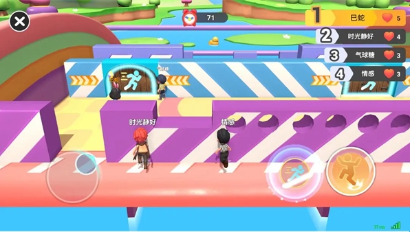 男生女生向前冲是一款多人竞技闯关冒险游戏。玩家需要控制你的角色在各种熟悉的关卡内进行冒险,有抢礼物、躲开前进的墙壁、气球大战、顶星星、炸弹大作战等等十几种游戏玩法都在这里,真实还原了电视节目的场景,感兴趣的小伙伴不断的去冲刺冒险最后夺得冰箱吧!