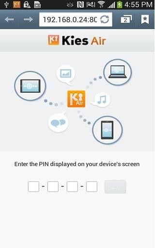 4、然后在电脑浏览器上访问Kies Air提供的网址就可以配对成功了。