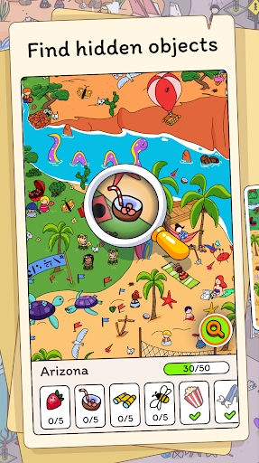 热闹的关卡:每个关卡都有一个独特的主题,例如四个季节、露营等。在每个游戏中,我们都隐藏了看起来可能属于那里的物体,这样您就有了适当的挑战无需在这里挑选海滩上的雪鞋!我们还一直致力于添加更多关卡,以便您永远不会失去乐趣。