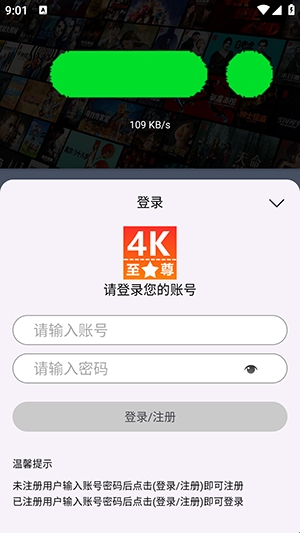2、在播放界面会显示需要登录注册,随便输入账号密码即可完成。