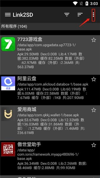 1、打开link2sd中文版之后点击页面右上角的三个点。