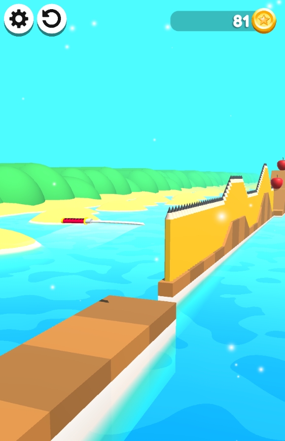 1、进入游戏后,点击屏幕即可控制刀具飞行。