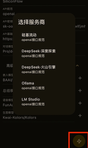 4、输入您的API密钥(注意,点击右下角浮动按钮可以快捷填写预置的服务商配置)