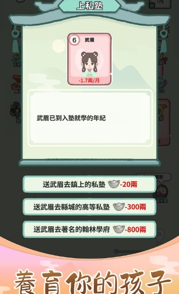 2、后续养成无固定路线,玩家既可以通过学习提升智力、努力打工积累财富。