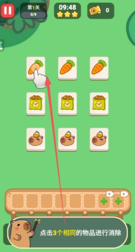 1、我们可以直接点击屏幕中的各个方块,点击三个相同的方块就可以进行消除了。