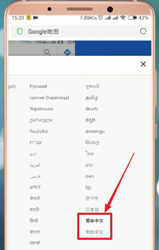 在弹出的菜单中,点击【语言】,可以看到谷歌地图的语言设置就在这里啦,根据需求选择【简体/繁体中文】即可。