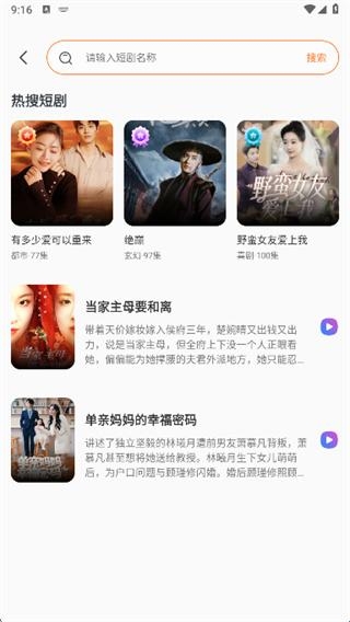 2、提供搜索功能,用户可以输入剧集名称,快速找到要观看的短片。