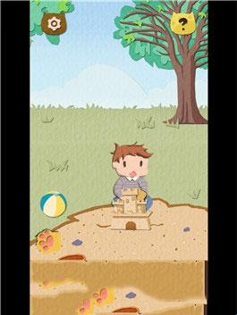 4.将铁锹给熊孩子,等他玩沙土之后将他的上一个玩具球收集过来。